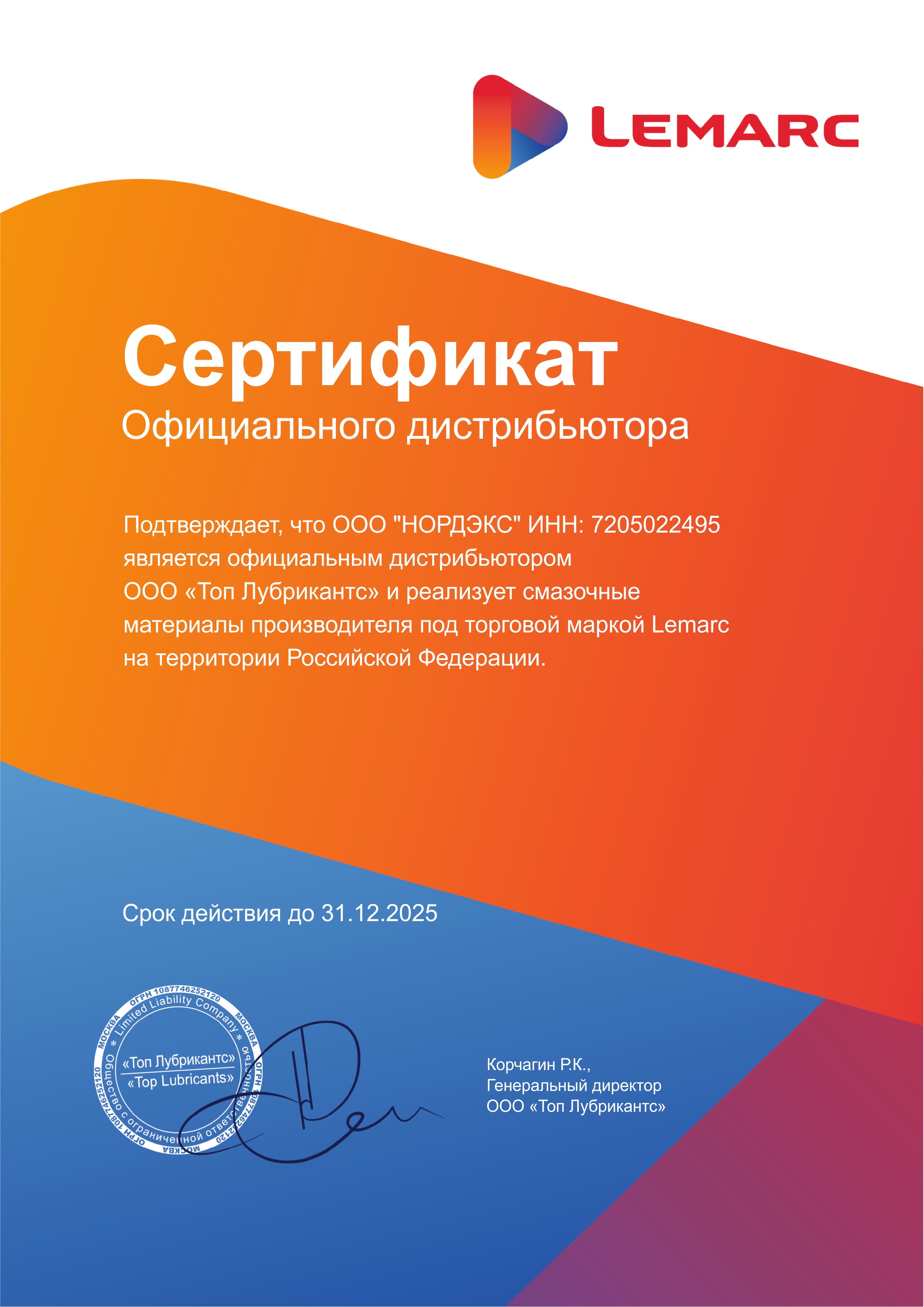 ООО "НОРДЭКС" является официальным дистрибьютором ООО «Топ Лубрикантс» и реализует смазочные материалы производителя под торговой маркой Lemarc на территории Российской Федерации.